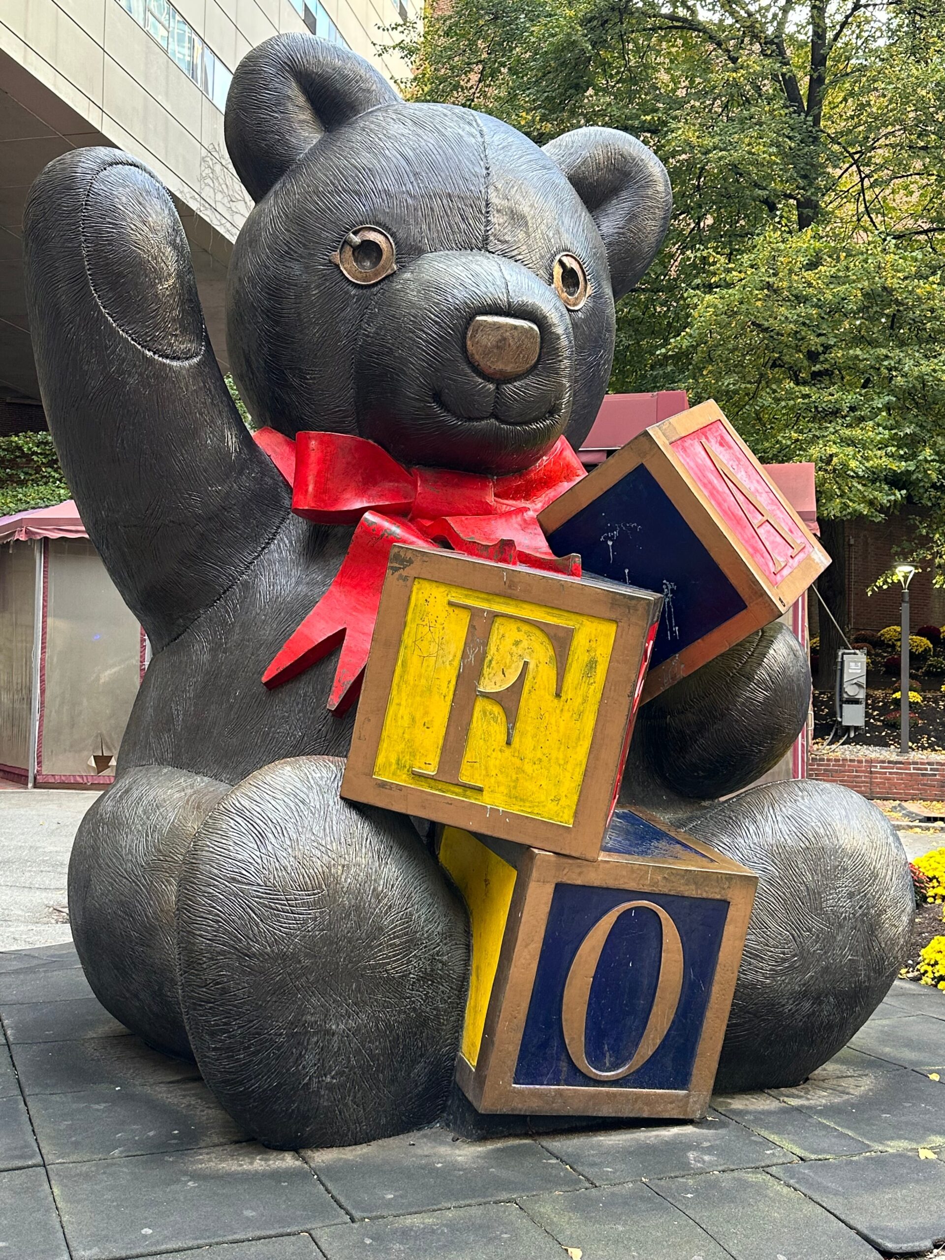 The giant bronze teddy bear sculpture that once sat outside the FAO Schwarz toy store on Boylston Street in Boston was moved to Tufts Medical Center on Washington Street in 2004. The toy company went bankrupt in 2003. (Anne Brennan/MassLive)