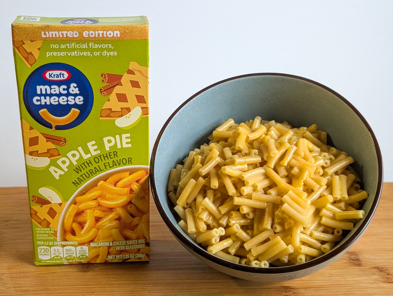 The cheese taste is dialed down to a mere pin drop of flavor. Meanwhile, it’s clear that Kraft got cold feet about how intense they wanted that “apple pie” flavor to be. As a result, it’s a bland bowl of pasta with fleeting whispers of cheese and a vague echo of brown sugar and spices.