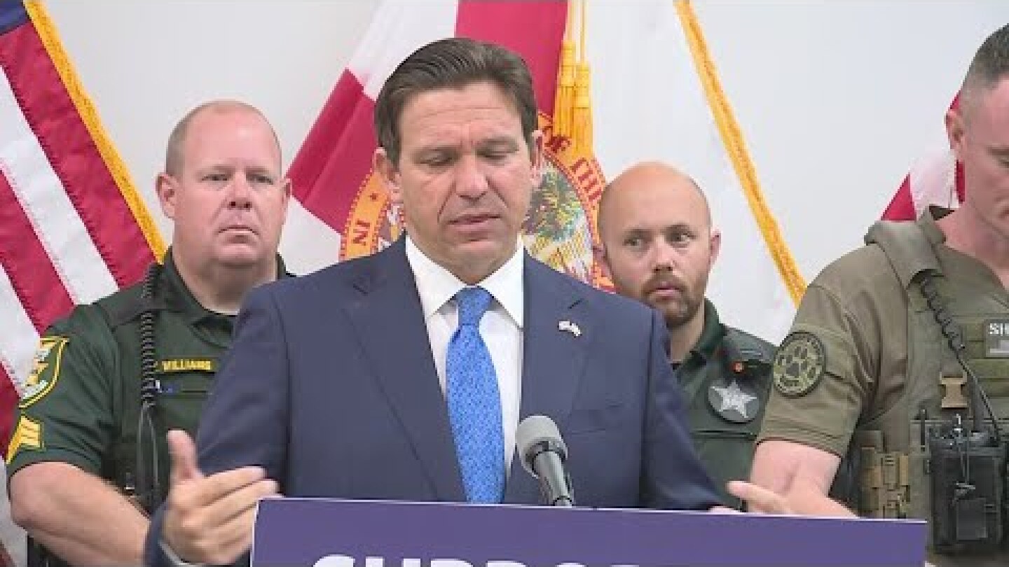 Backed by a line of officers, DeSantis touted both measures as creating a better climate for law enforcement and accused other states of fomenting hostility toward the police.