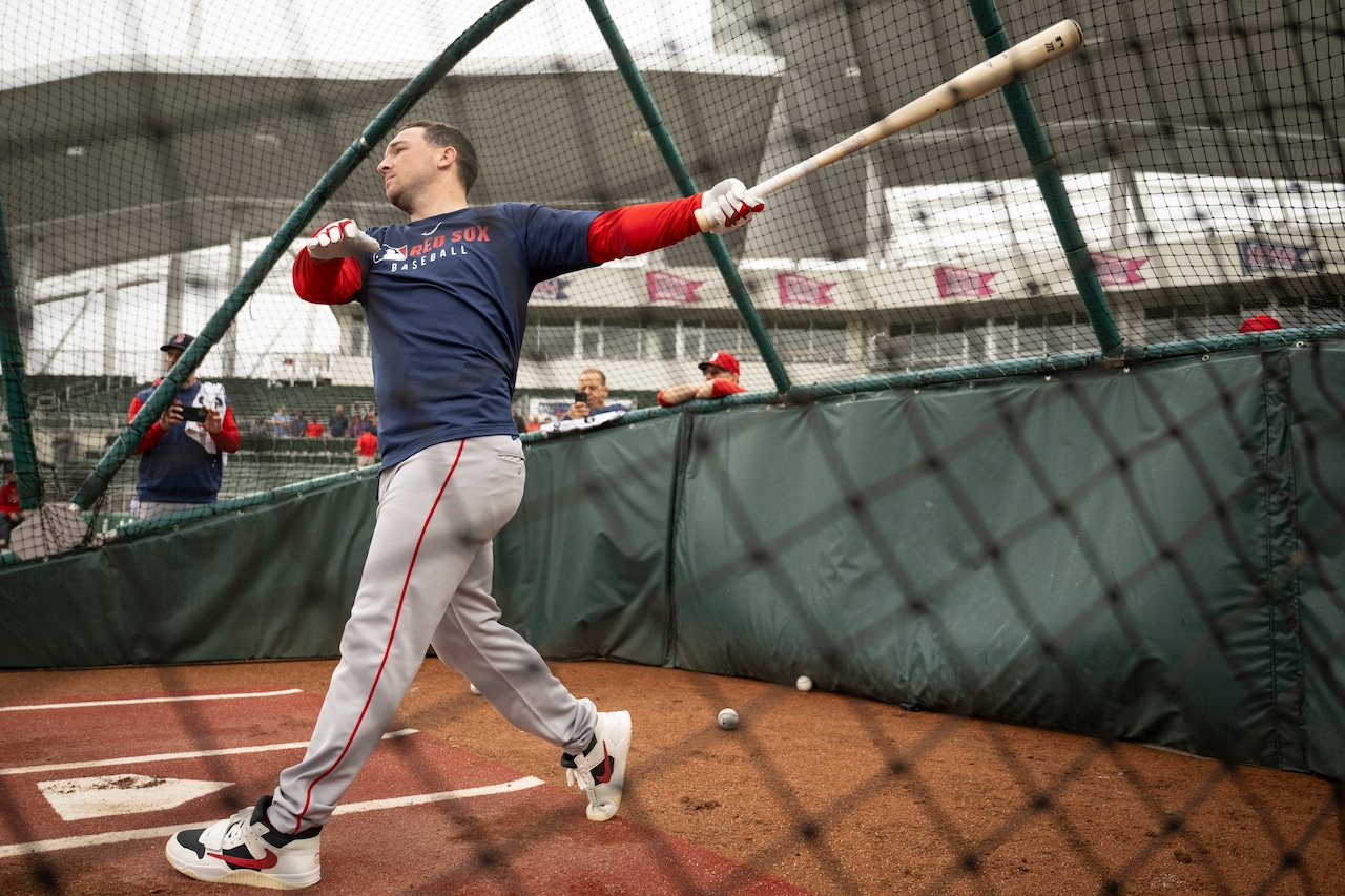 Manager Alex Cora added, “Today we had a meeting. The one-on-ones. And he talked about certain things he didn’t do last year offensively. He was off mechanically early on. His swing rate went up and he was chasing a little bit more. And he‘s just trying to stay behind the ball and see the pitch. It’s a different at-bat. He will take pitches. He will hit with two strikes. He’ll take his walks. He’ll swing less than most of the guys here, which is great. I think we needed that. And he’s going to balance the lineup.”