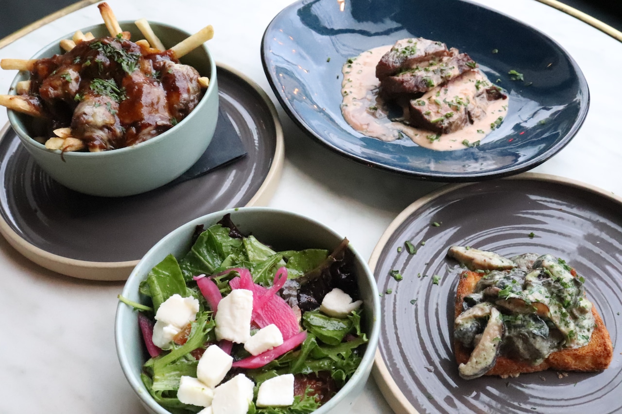 Standout options include Parisian Mushroom Croquette — served with truffle sour cream — strawberry-tomato burrata salad and Poutine a la Francaise that comes with fries with pulled beef bourguignon, bourguignon sauce and gruyere cheese. Overall, there are 18 tapas to choose from.