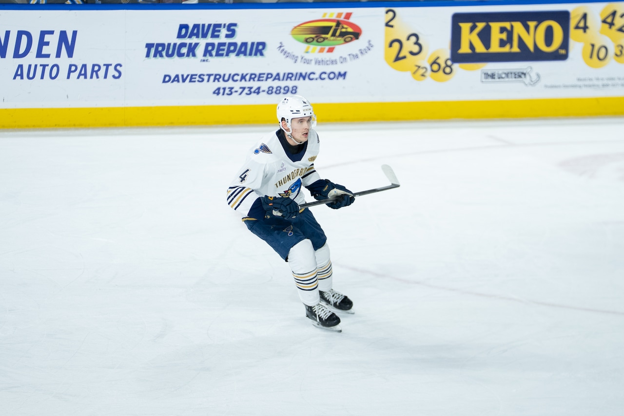 Things began promisingly for the T-Birds when Theo Lindstein jumped up into a rush on the left side and roofed a wrister past Penguins All-Star netminder Sergei Murashov, giving Springfield a 1-0 lead just 33 seconds into the contest, the fastest goal from the start of a game by a T-Birds player this season. It was the rookie blueliner’s third goal in as many contests.