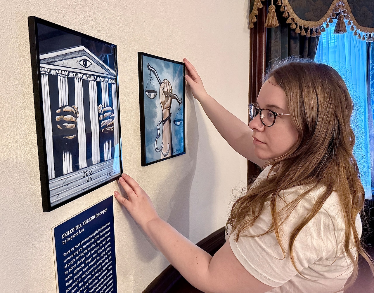 HOLYOKE — The distant sound of a police siren drifted through an open door at the Wistariahurst Museum, as if it was taunting those who created the images and essays Megan Seiler was hanging on the walls.