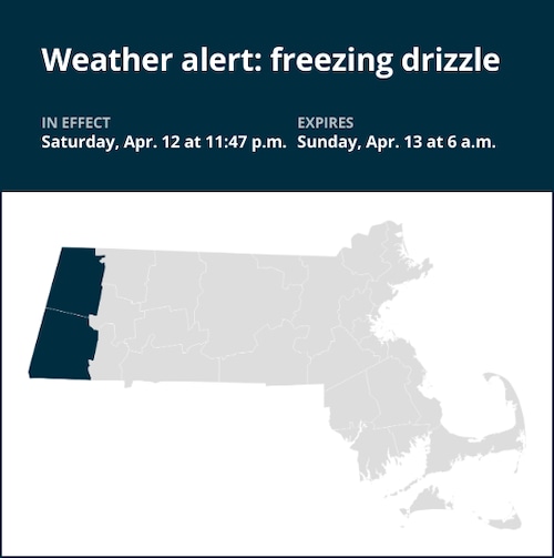 An updated report from the National Weather Service was issued on Saturday at 11:47 p.m. for freezing drizzle until Sunday at 6 a.m. for Berkshire County.