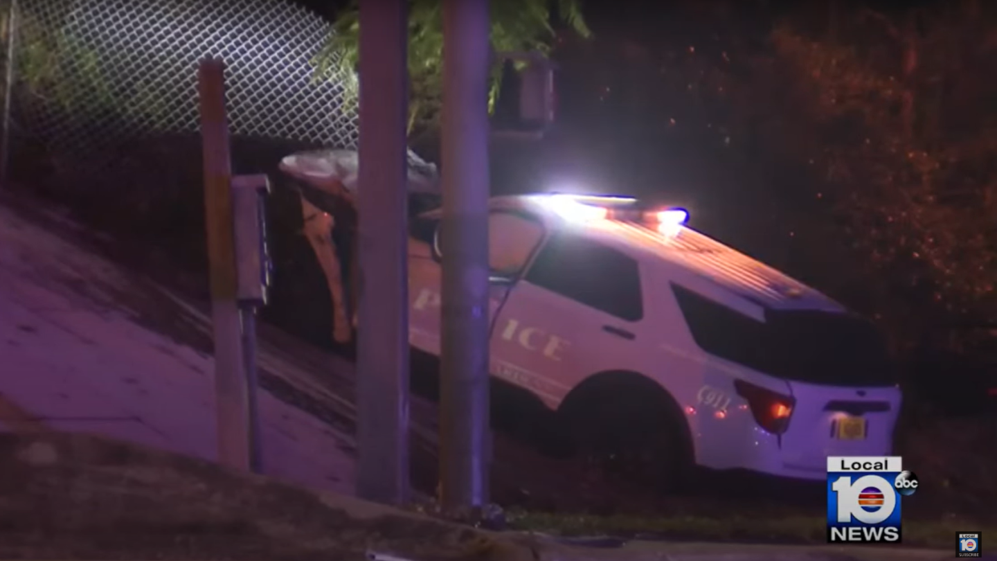 MIAMI GARDENS, Fla. — Newly released surveillance footage shows a cruiser spinning several times after being T-boned in an intersection by a DUI driver who ran a red light, NBC Miami reported.
